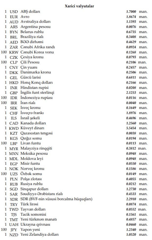 Rəsmi məzənnələr açıqlandı