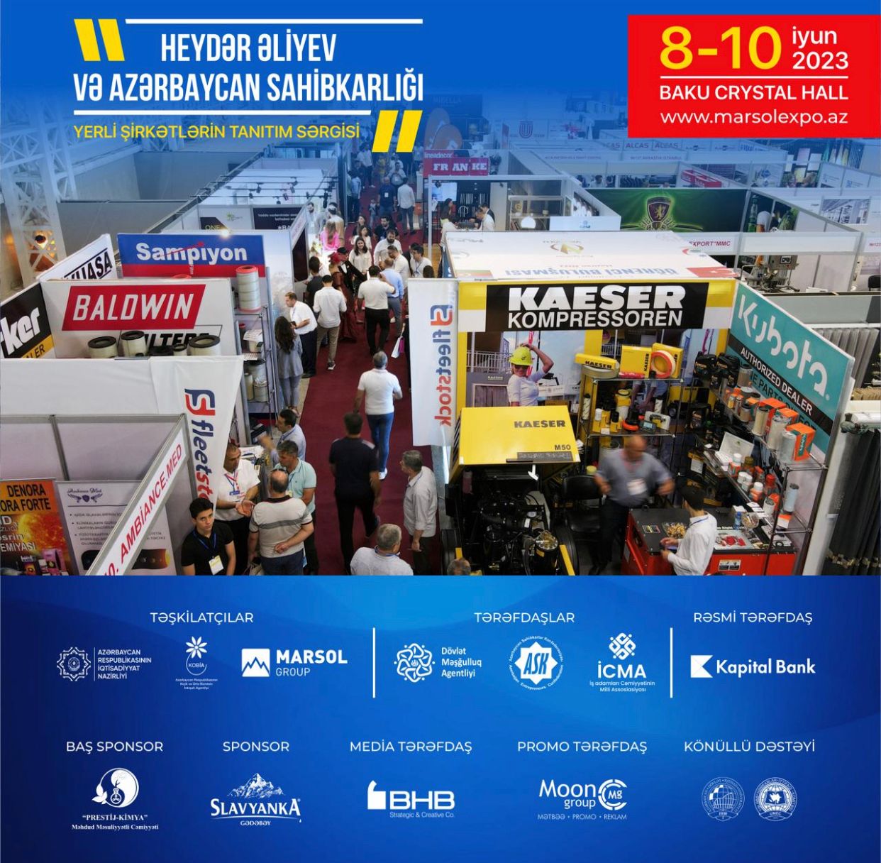 Bu gün “Baku Crystal Hall”da İqtisadiyyat Nazirliyinin dəstəyi, Kiçik və Orta Biznesin İnkişafı Agentliyi (KOBİA) və “Marsol Group”un birgə təşkilatçılığı, “Kapital Bank”ın rəsmi tərəfdaşlığı ilə “Heydər Əliyev və Azərbaycan sahibkarlığı” mövzusunda yerli şirkətlərin sərgisi öz işinə başlayıb. Yerli şirkətlərin sərgisində 150-dən çox şirkətin məhsul və xidmətləri təqdim olunur, sahibkarlar arasında ikitərəfli görüşlər keçirilir. Sərgi 10 İyun tarixinədək (İyunun 10-u da daxil olmaqla) davam edəcək. Hər kəsi bu sərgiyə dəvətlidir.