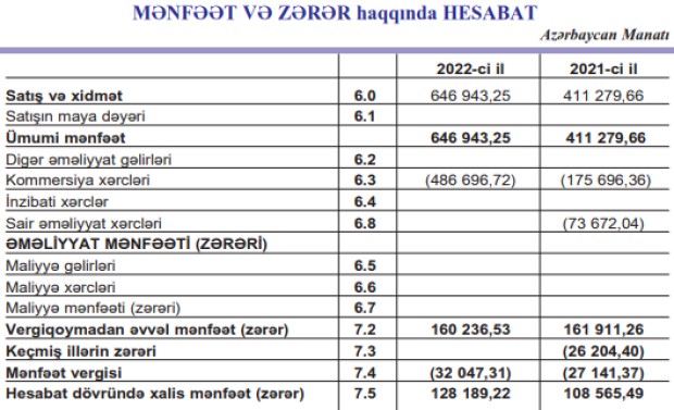"Karkas" ASC 2022-ci ili 128 min 189 manat xalis mənfəət ilə başa vurub. Şirkət 2021-ci ili 108 min 565 manat xalis mənfəət ilə bağlamışdı.