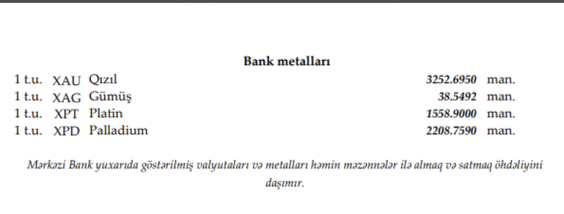 Rəsmi məzənnələr açıqlandı