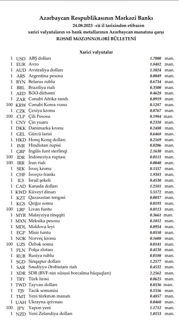 Rəsmi məzənnələr açıqlandı