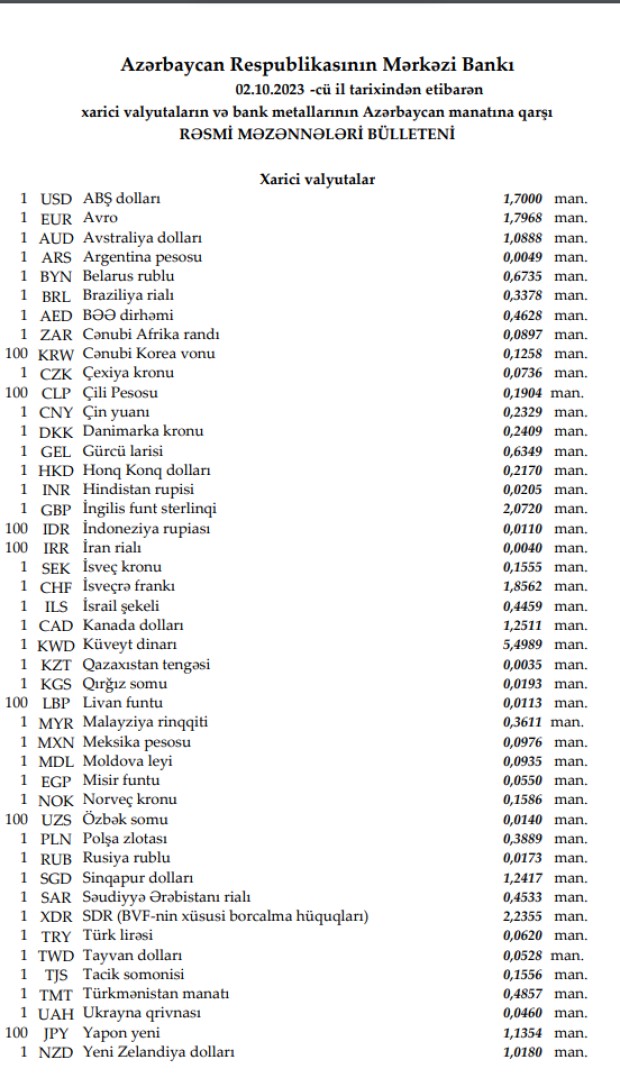 Mərkəzi Bankdan 2026-cı ildə Dollar/Manat məzənnəsi barədə açıqlama