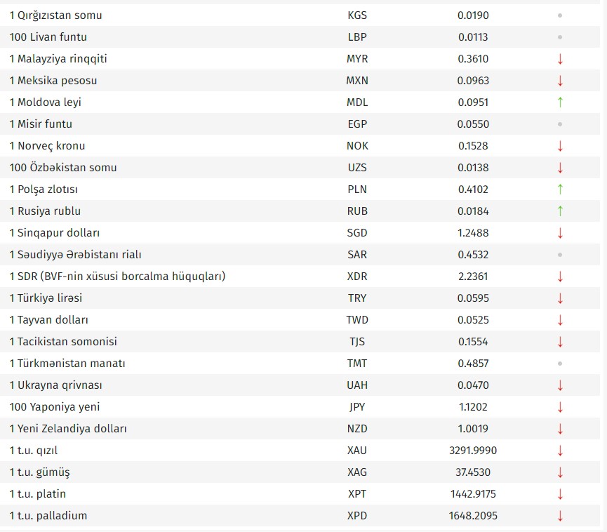 Rəsmi məzənnələr açıqlandı