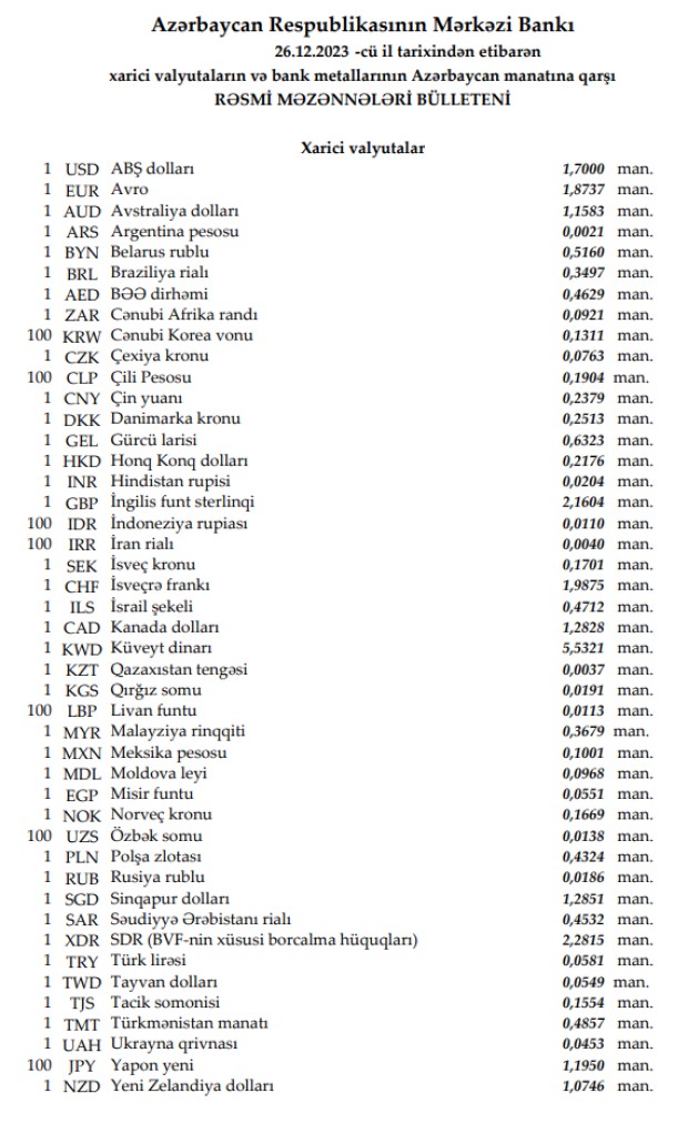Dolların sabah üçün rəsmi məzənnəsi müəyyən olunub