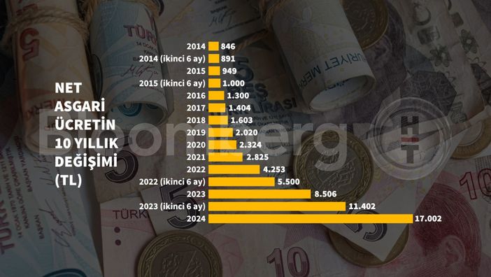 Türkiyədə 2024-cü il üçün xalis minimum əmək haqqı 49% artırılaraq 17 min 2 Türk Lirəsi (TL) (cari məzənnə ilə 986 manat) müəyyən edilib.