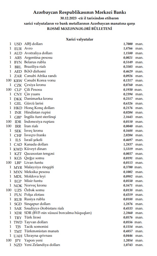 Dolların sabah üçün rəsmi məzənnəsi müəyyən olunub