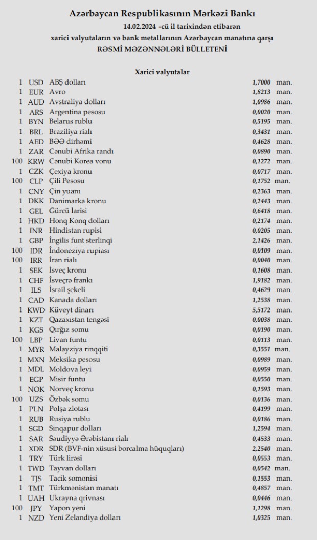 Dolların sabah üçün rəsmi məzənnəsi müəyyən olunub