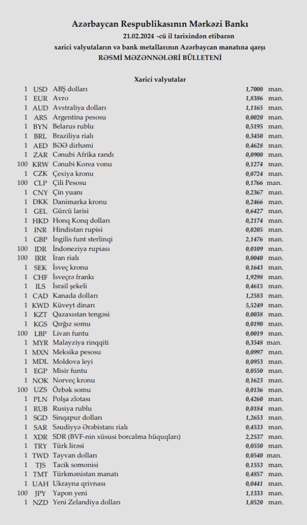 Dolların sabah üçün rəsmi məzənnəsi müəyyən olunub