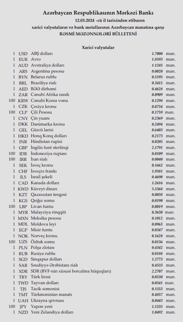 Dolların sabah üçün rəsmi məzənnəsi müəyyən olunub
