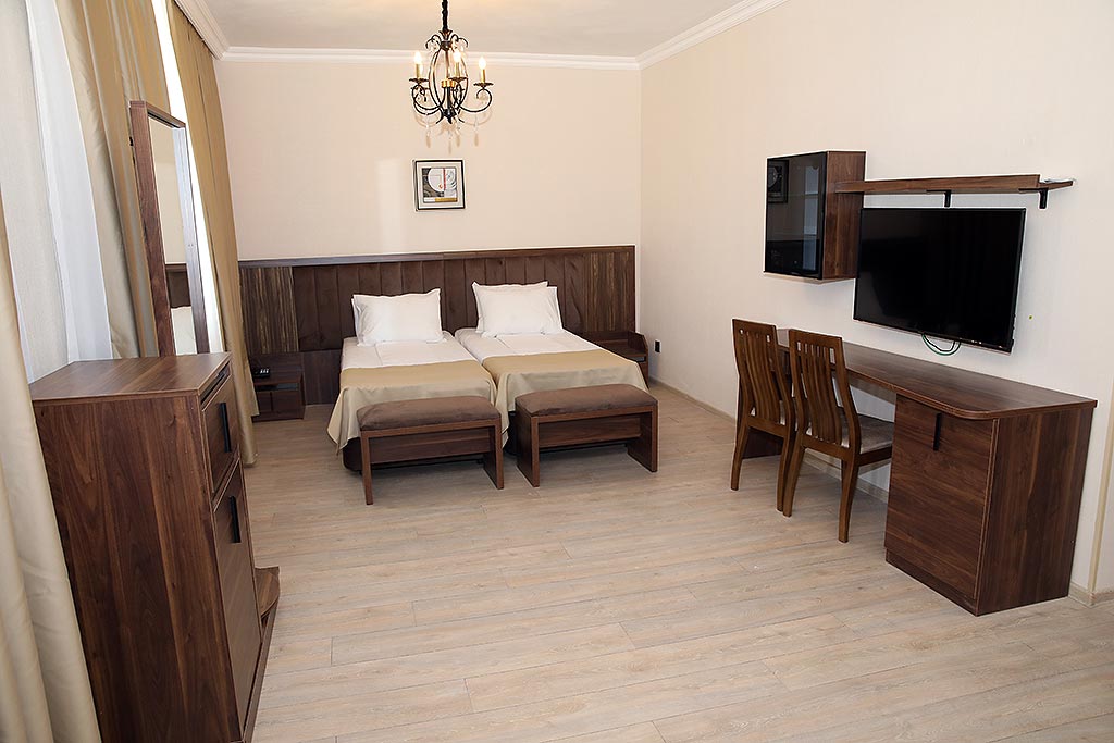 Məlumat verilib ki, mərkəzdə 100 nəfərlik 2 dördmərtəbəli yataq korpusu var. Bütün otaqlar kondisioner, televizor, soyuducu, seyf, fen və xalatlarla təchiz olunub. Eləcə də burada ittifaq üzvlərinin rahat dincəlməsi üçün istirahət guşələri də mövcuddur. Mərkəzin ərazisində ikimərtəbəli müalicə korpusu da var ki, bunun da birinci mərtəbəsində yeməkxana zalı, ikinci mərtəbəsində müalicə və müayinə kabinetləri yerləşir. Qapalı hovuz da istirahət edənlərin istifadəsindədir. Həmçinin müxtəlif beynəlxalq və yerli tədbirlərin keçirilməsi üçün nəzərdə tutulan zalda hər cür şərait var.