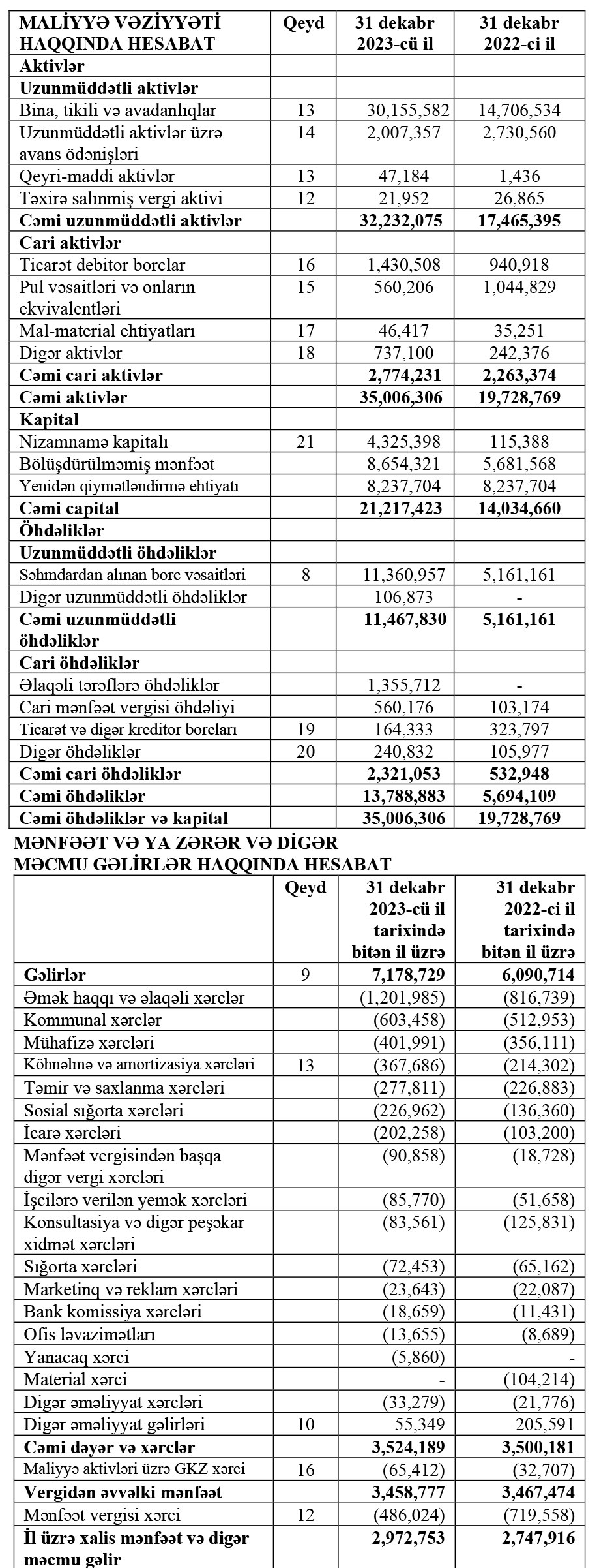 Marja.az xəbər verir ki, "Çinar Park" QSC-nin əsas əməliyyat gəlirləri 2022-cil ildə 6 milyon 91 min manat ikən, 2023-cü ildə 7 milyon 179 min manata yüksəlib (1 milyon 88 min manat və ya 17,7% artıb).