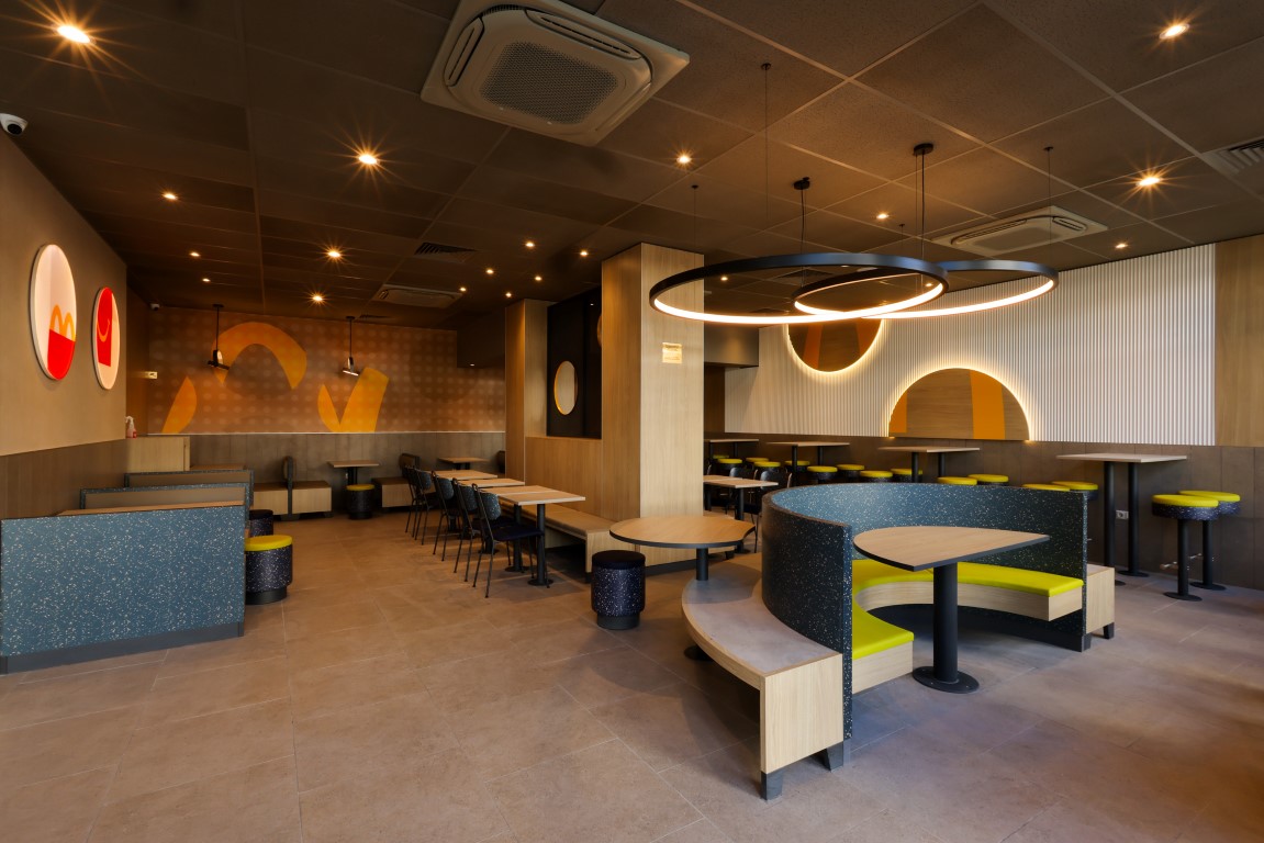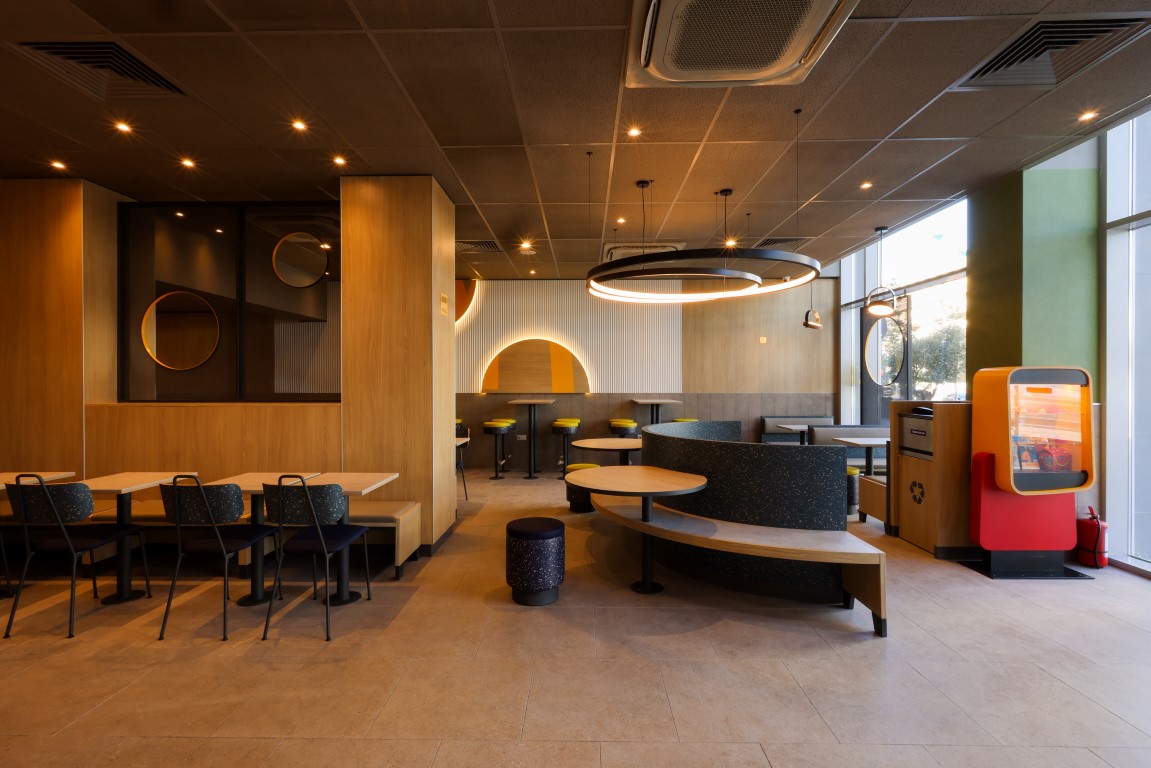 146 oturacaq yerinə malik yeni “McDonald's” restoranı interyerə rahatlıq və eleqantlıq atmosferi bəxş edən zərif “Luna” üslubunda dizayn edilib. Burada qonaqların rahatlığı üçün, digər “McDonald's” filiallarında olduğu kimi, sifariş prosesini daha asanlaşdıran özünəxidmət köşkləri quraşdırılıb, həmçinin sifarişləri birbaşa masa arxasında əyləşərək qəbul etməyə imkan verən “masa xidməti” göstərilir.