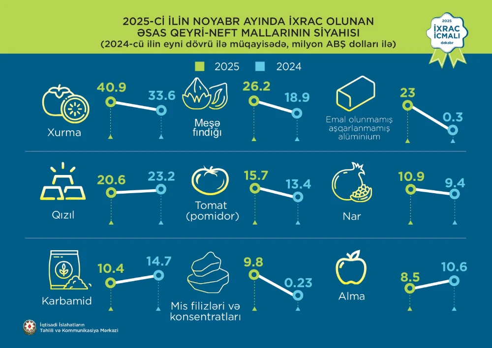 İqtisadi İslahatların Təhlili və Kommunikasiya Mərkəzi (İİTKM) “İxrac icmalı”nın dekabr sayını təqdim edib.