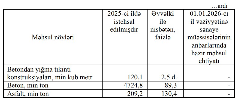 2025-ci ildə Azərbaycanda 4 milyon 142,1 min ton sement istehsal edilib.