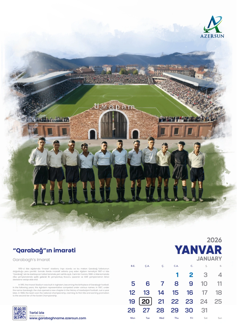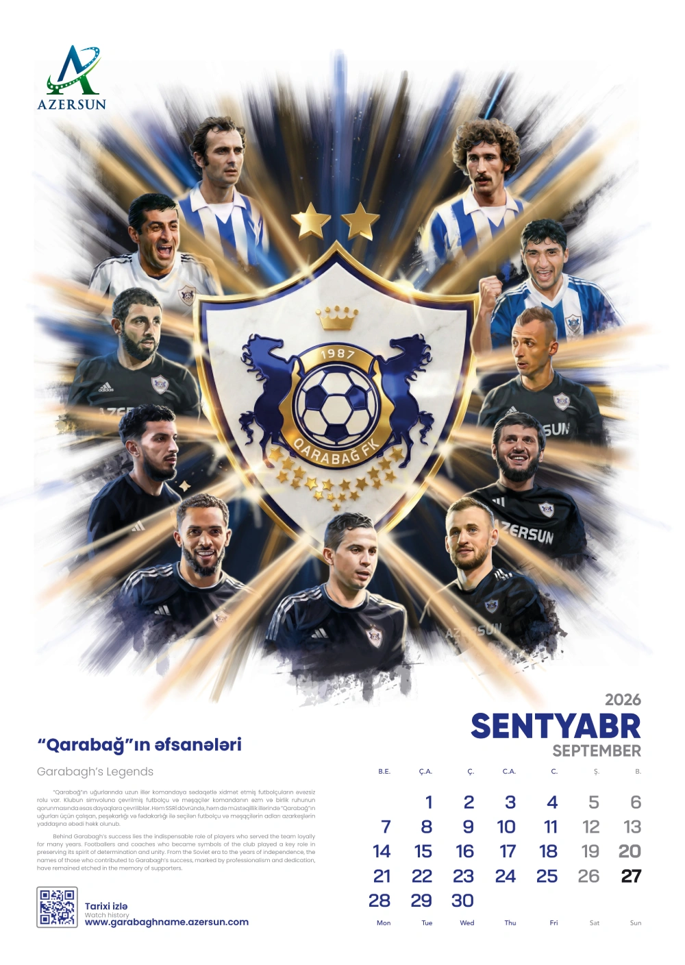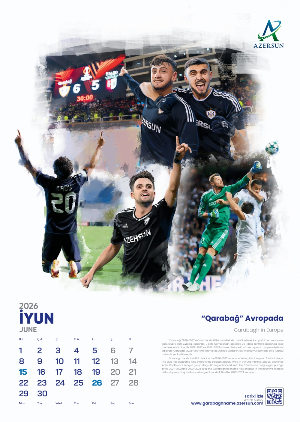 Azərsun Holdinq Qarabağnamə 2026 təqvim dəsti Azərsun Holdinq təqvimi Qarabağ futbol klubu Qarabağ FK xüsusi təqvim nəşri futbol mövzulu təqvim Qarabağın İmarəti Allahverdi Bağırov Azərsun Holdinq himayəsi Abdolbari Gozal Qarabağ klubunun tarixi Qarabağ əfsanəvi futbolçuları Qarabağın uğurları Qarabağ beynəlxalq qələbələr Qarabağın ustadı Qurban Qurbanov Qarabağda dönüş nöqtəsi Qarabağın Fatehi İlham Əliyev Qarabağ FK Qarabağ həqiqətlərinin təbliği Qarabağ brendi idman və korporativ dəstək futbol irsi 25 illik himayə Azərsun Holdinq və Qarabağ Azərbaycan futbolu idman mədəniyyəti Qarabağ klubunun yubileyi korporativ sosial məsuliyyət idmana dəstək Azərbaycan futbol tarixi.