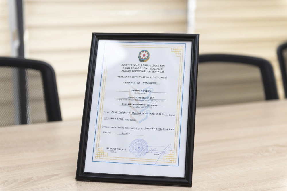 İvanovka kəndində özəl aqropark - Qeydiyyat şəhadətnaməsi aldı