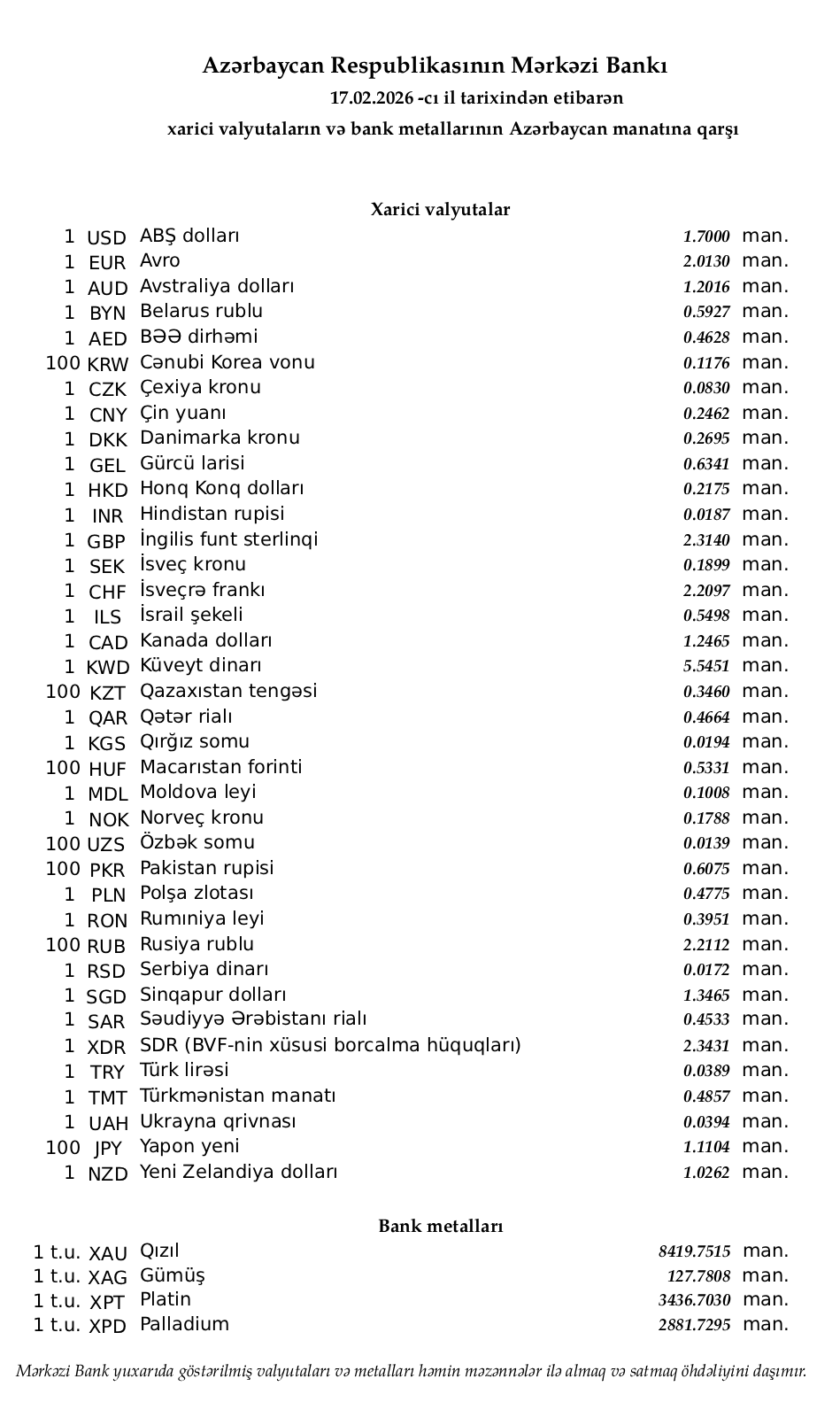 Dolların sabah üçün rəsmi məzənnəsi müəyyən olunub
