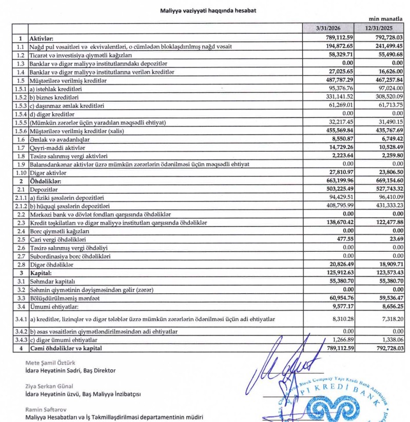 Yapı Kredi Bank Azərbaycan maliyyə nəticələri 2026 Yapı Kredi Bank Azərbaycan xalis mənfəət azalması Yapı Kredi Bank Azərbaycan 2026 Q1 hesabatı Yapı Kredi Bank Azərbaycan kredit portfeli artımı Yapı Kredi Bank Azərbaycan aktivləri Yapı Kredi Bank Azərbaycan depozit portfeli Yapı Kredi Bank Azərbaycan kapitalı Yapı Kredi Bank Azərbaycan bank göstəriciləri Yapı Kredi Bank Azərbaycan maliyyə hesabatı Yapı Kredi Bank Azərbaycan bank sektoru Azərbaycan Yapı Kredi Bank Azərbaycan 2026 birinci rüb nəticələri Azərbaycan bank sektoru xəbərləri bankların maliyyə göstəriciləri Azərbaycan Yapı Kredi Bank Azərbaycan kreditlərin artımı Yapı Kredi Bank Azərbaycan depozitlərin azalması Yapı Kredi Bank Azərbaycan kapital artımı