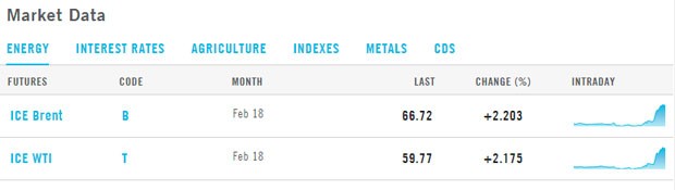 "Marja" xəbər verir ki, Bakı vaxtı ilə saat 21:20-yə olan məlumata görə, Brent neftinin barel qiyməti 66,72 dollara, ABŞ xam neftinin qiyməti isə 59,77 dollara qalxıb.
