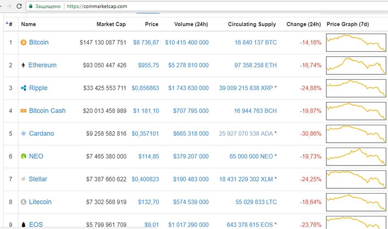 Bitcoin-in qiyməti 9 min dollardan da aşağı düşüb.