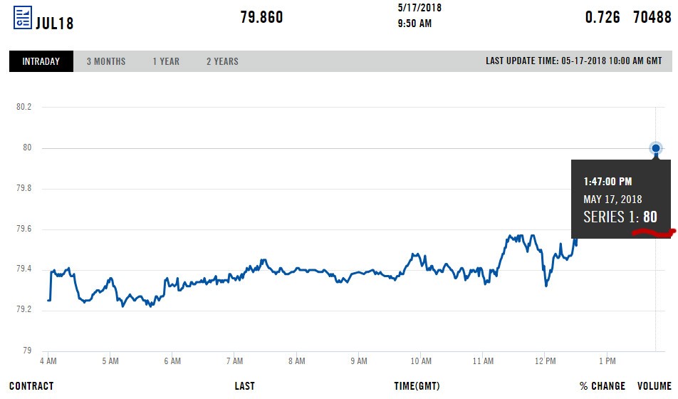 Bu gün Bakı vaxtı ilə saat 13:48-də Brent neftinin barelinin qiyməti 80 dolları görüb.