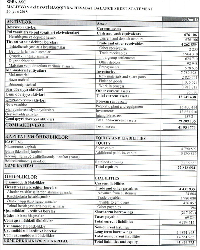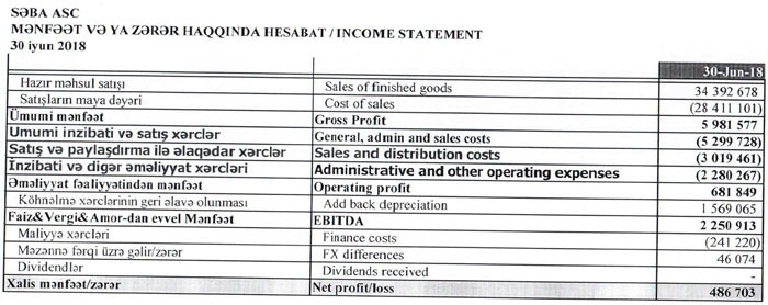 Toyuq əti istehsalçısı “Səba” ASC 2018-ci ilin birinci yarısını 486 min 703 manat xalis mənfəətlə başa vurub. Qeyd edək ki, ASC 2017-ci ili 1 milyon 173 min manat xalis mənfəətlə bağlamışdı.