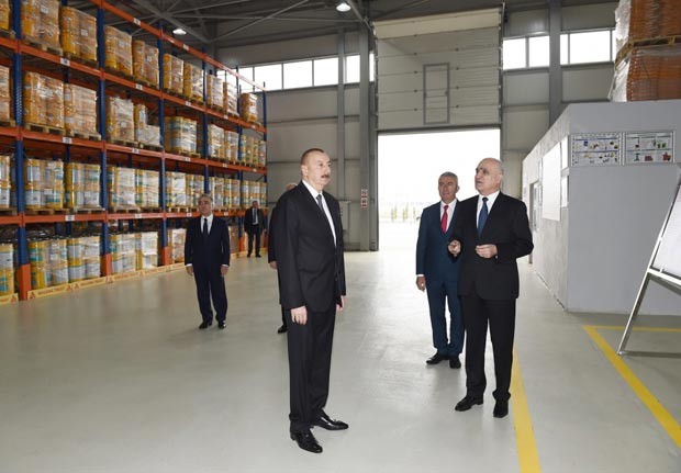 İlham Əliyev inşaat kimyəviləri zavodunu işə saldı - FOTOLAR
