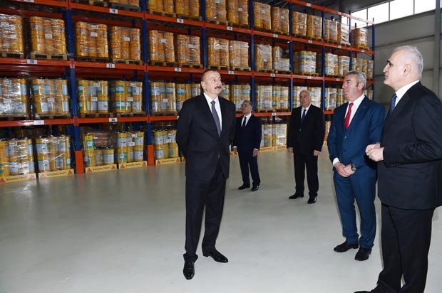 Prezident İlham Əliyev zavodu işə saldı.