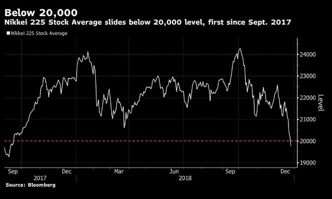 "Marja" xəbər verir ki, Yaponiyanın Nikkey 225 İndeksi 2017-ci ilin Sentyabr ayından bəri ilk dəfə mühüm səviyyə olan 20.000-dən aşağı düşüb.