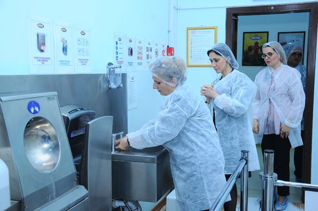 Görüşün davamı istehsalat sahəsində keçib. Sahə rəisinin bələdçiliyi ilə istehsalat gəzintisində müəllimlərə istehsal xətləri, istehsal olunan məhsullar və sözügedən sahənin digər məqamları ətraflı şəkildə izah olunub.