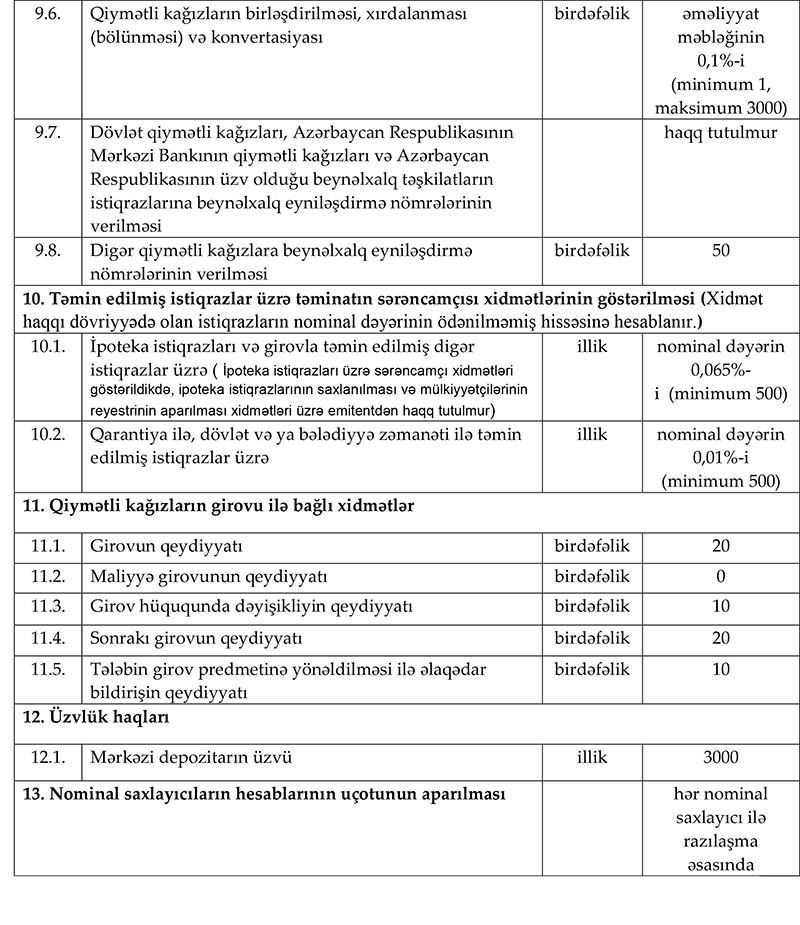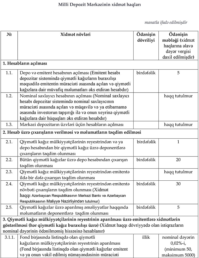 Mərkəzi Bankının İdarə Heyəti “Milli Depozit Mərkəzinin xidmət haqları”nı təsdiq edib.