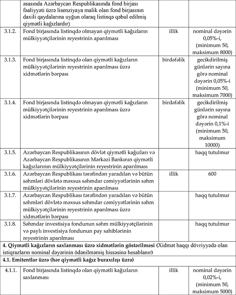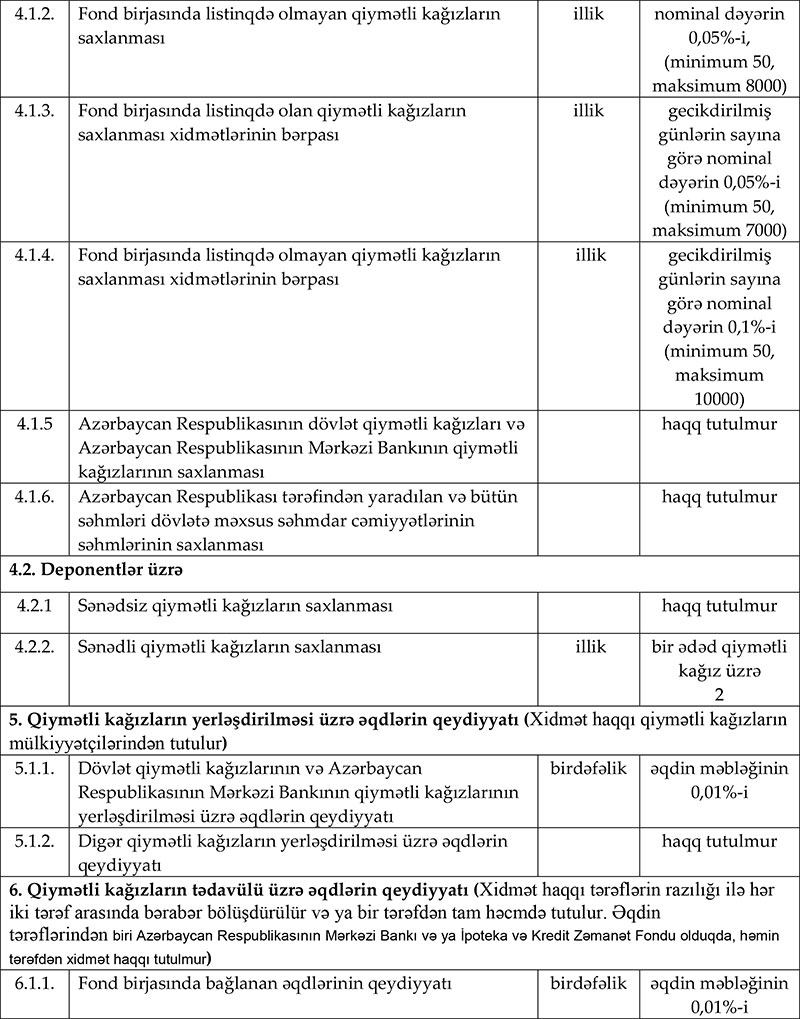 Milli Depozit Mərkəzinin xidmət haqları müəyyənləşib