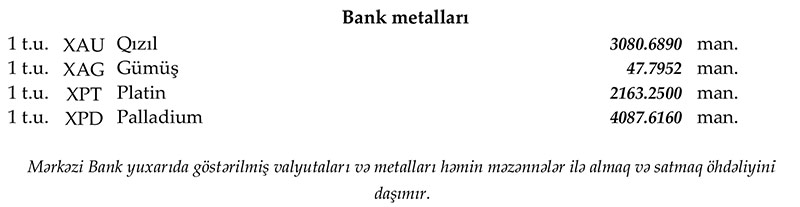 Rəsmi məzənnələr açıqlandı