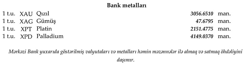 Mərkəzi Bank 2026-cı ilin ilk iş gününün rəsmi məzənnəsini açıqladı