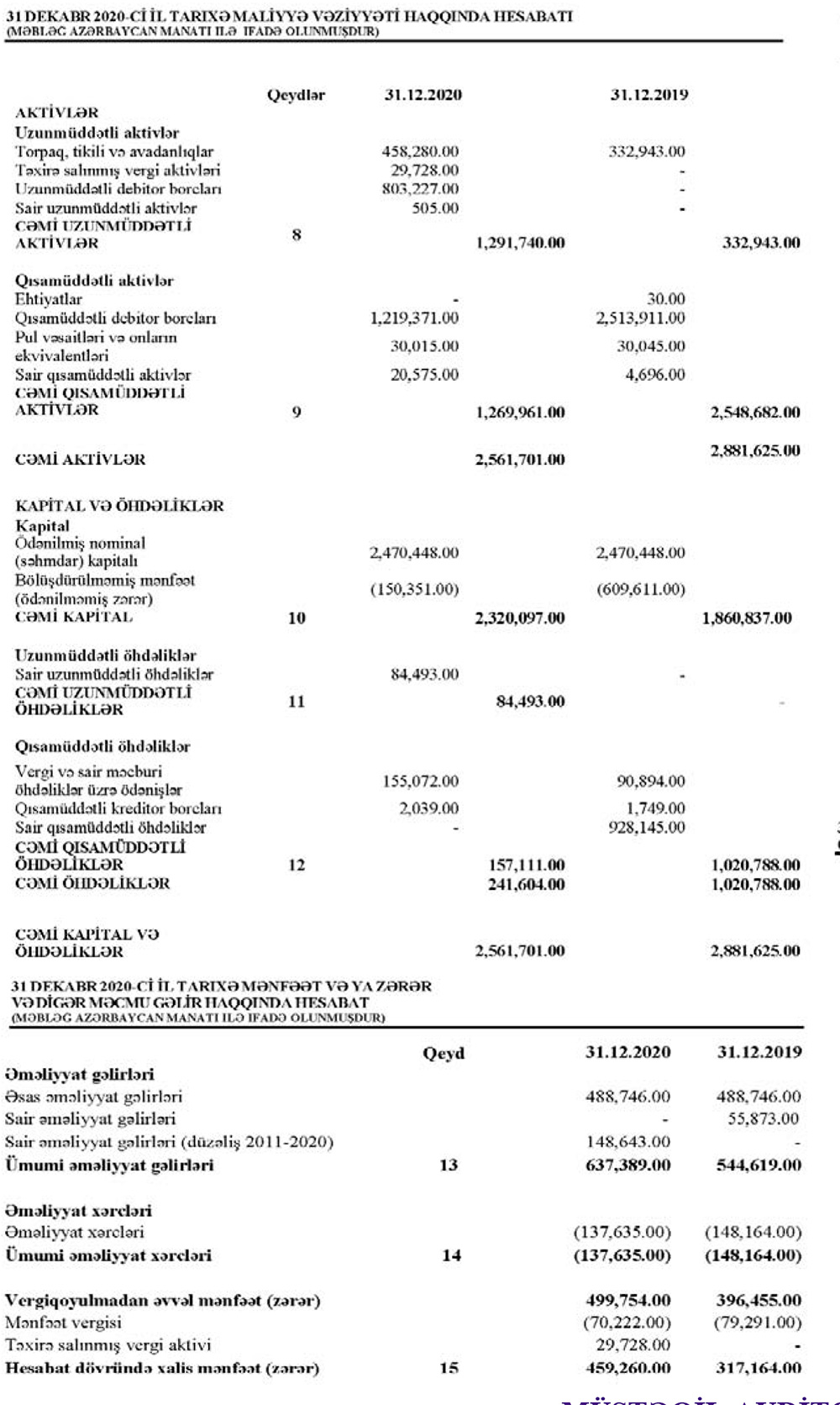 Marja şirkətin maliyyə hesabatına istinadən xəbər verir ki, 2019-cu ildə 488 min 746 min manat təşkil etmiş əsas əməliyyat gəlirləri 2020-ci ildə də 488 min 746 min manat olub. Ötən il ASC 148 min 643 manat sair əməliyyat gəlirləri də əldə edib.