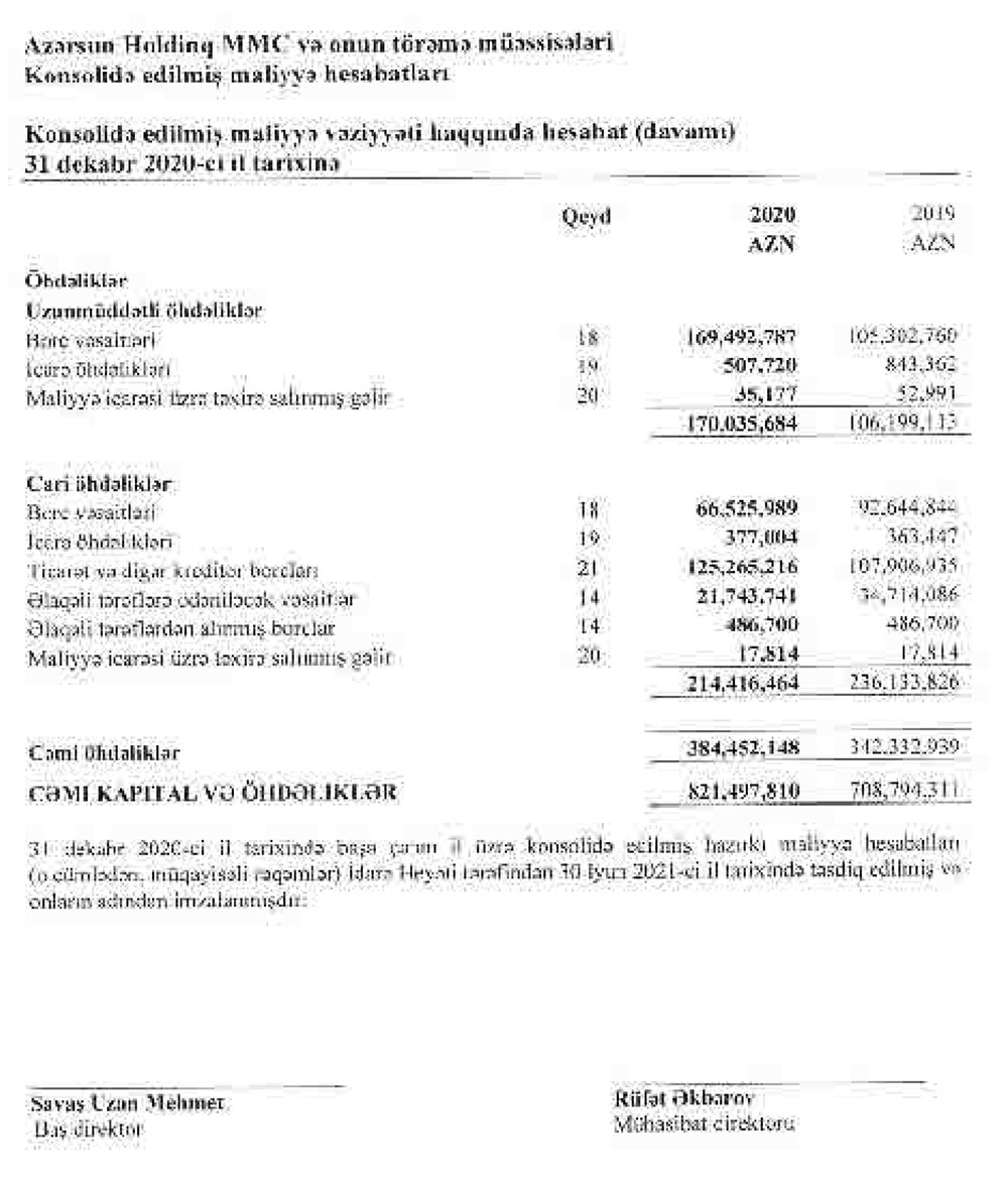 “Azərsun Holdinq” MMC 2020-ci ili 72 milyon 866 min manat xalis mənfəətlə başa vurub.