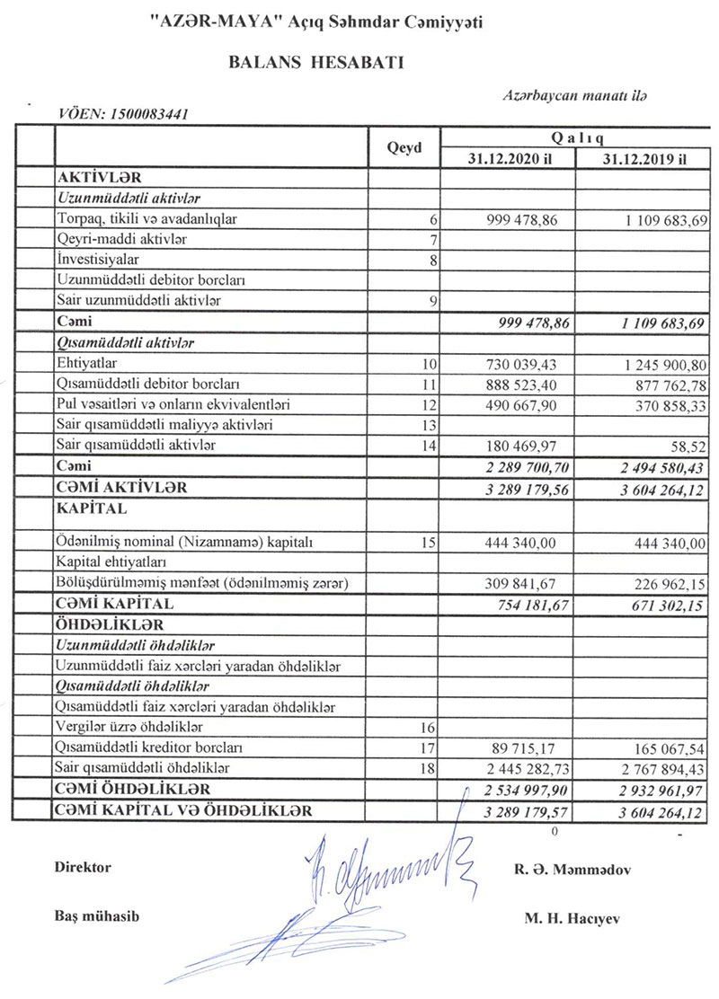 Ötən il “Azər-Maya” ASC 166 min manat əməliyyat mənfəətindən 33 min manat mənfəət vergisi ödəyib.