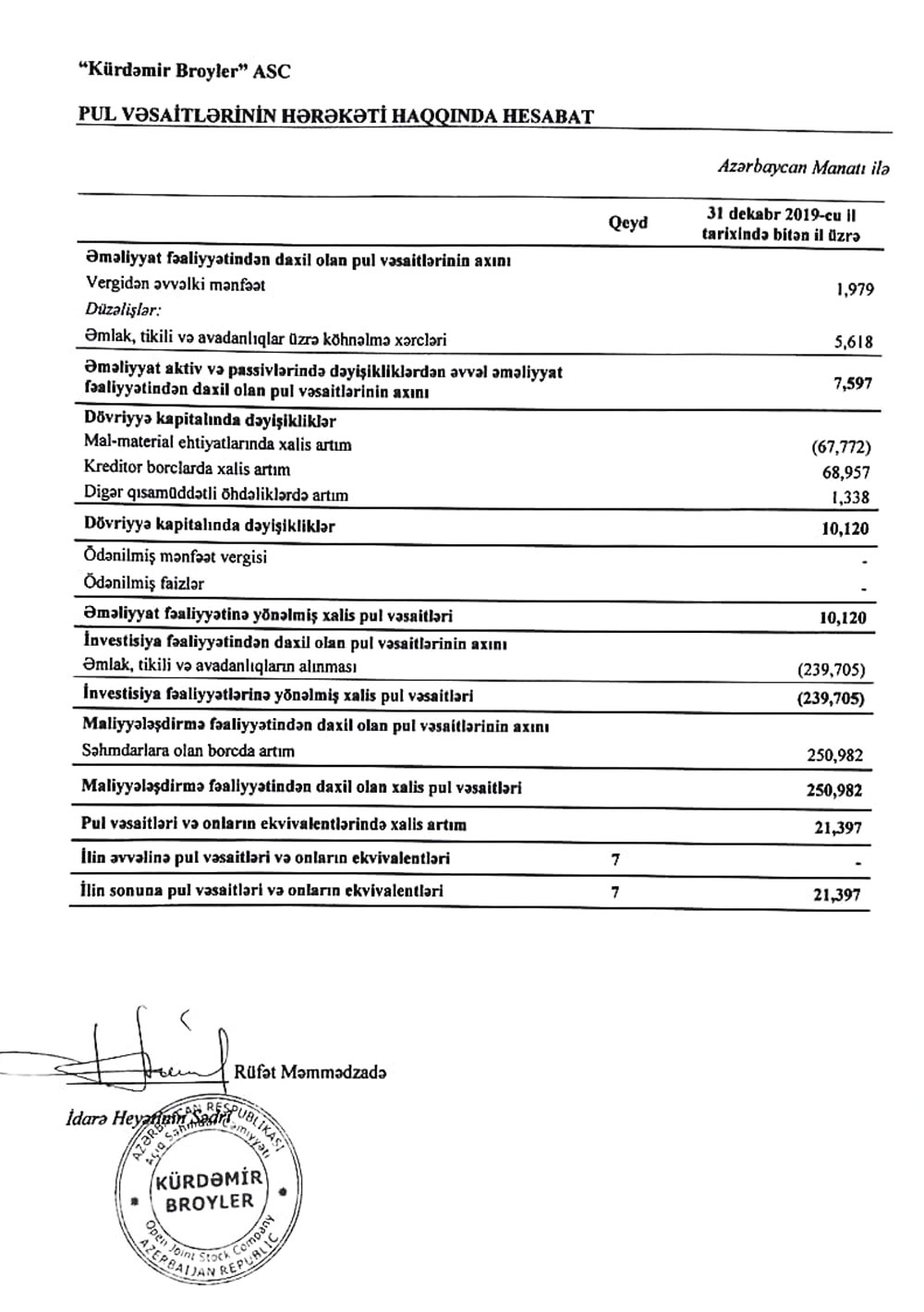31 Dekabr 2020-ci il tarixində “Kürdəmir Broyler” ASC 323 min 256 manat cəmi aktivlərə malik olub.