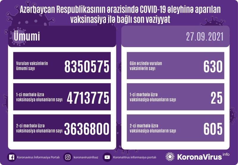 Azərbaycanda bu gün 630 nəfər vaksinasiya olunub.
