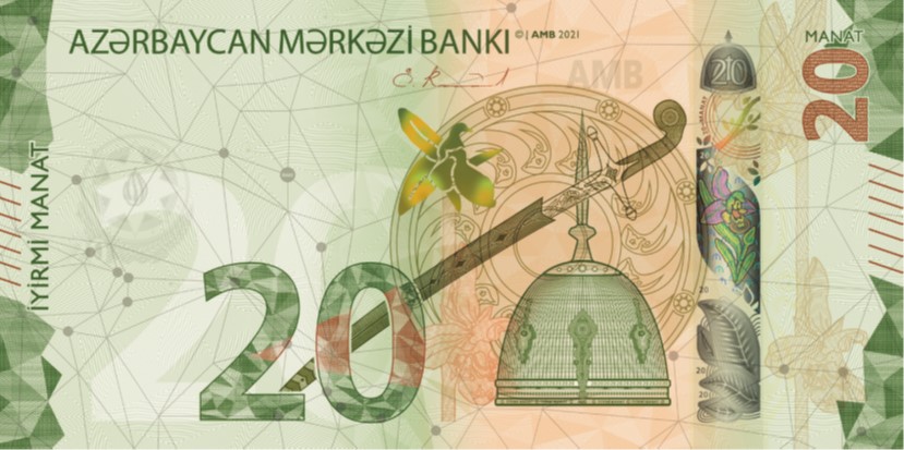 Azərbaycan Mərkəzi Bankı yenilənmiş dizayna və mütərəqqi mühafizə sistemlərinə malik 20 manatlıq pul nişanının 10 fevral 2022-ci il tarixdən tədavülə buraxılmasını elan edir.