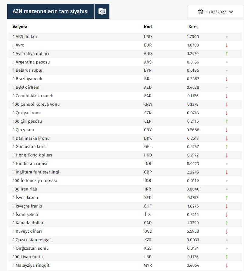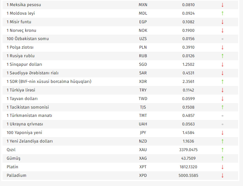 Dolların bazar ertəsi üçün rəsmi məzənnəsi müəyyən olunub
