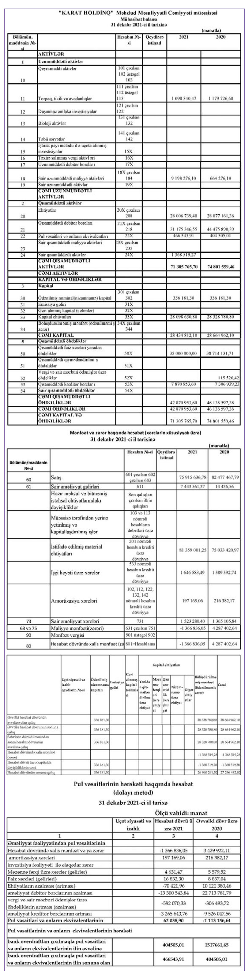 Ötən il "Karat Holdinq" 7 milyon 444 min manat sair gəlirlər də əldə edib (2020-ci ildə 14 min 436 manat).