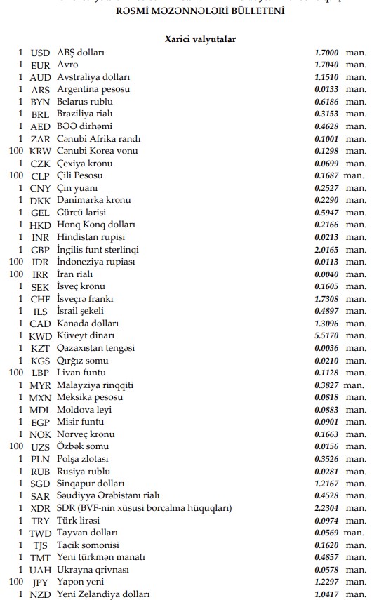 Dolların bazar ertəsi üçün rəsmi məzənnəsi müəyyən olunub