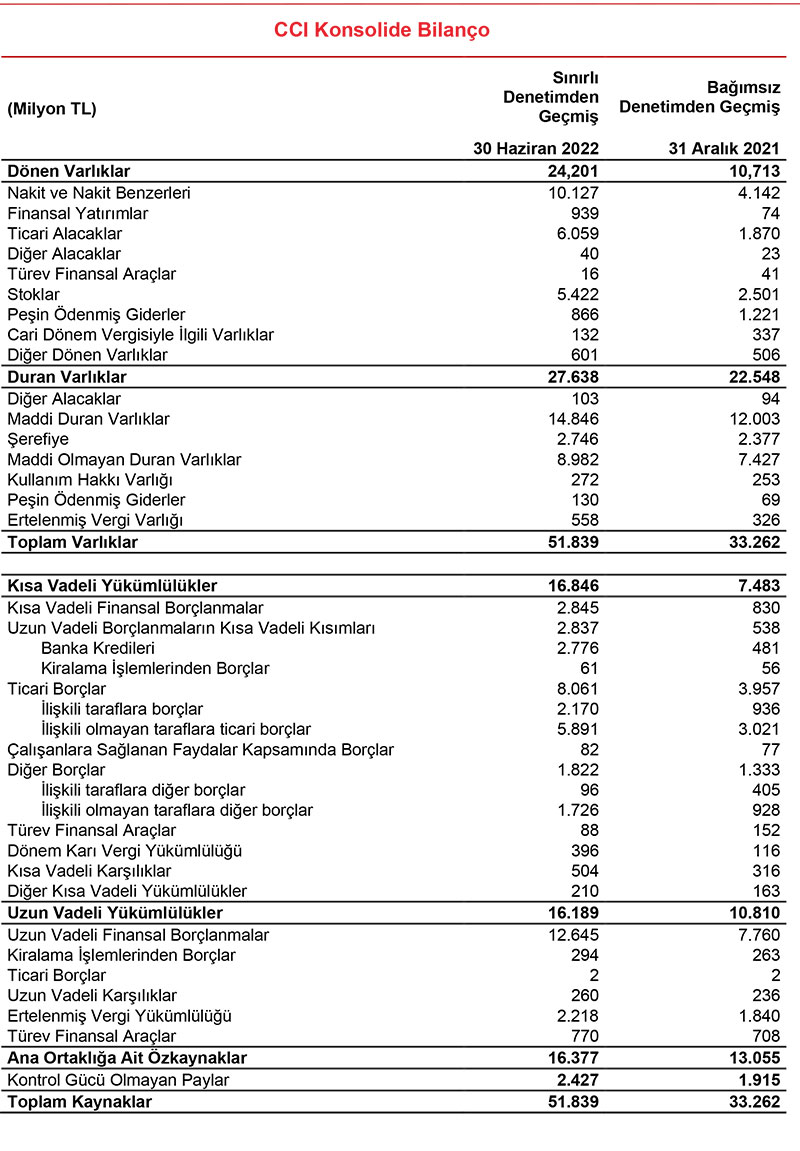 Türkiyə, Pakistan, Qazaxıstan, İraq, Özbəkistan, Azərbaycan, Qırğızıstan, İordaniya, Tacikistan, Türkmənistan və Suriyada fəaliyyət göstərən içki şirkəti "Coca-Cola İçecek"şirkəti 2022-ci ilin 2-ci rübü və 1-ci yarısı üzrə maliyyə göstəricilərini açıqlayıb.