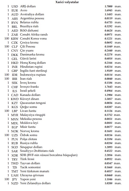 Dolların bazar ertəsi üçün rəsmi məzənnəsi müəyyən olunub