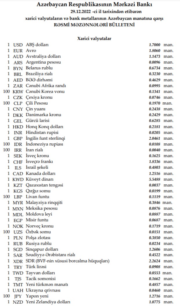 Rəsmi məzənnələr açılqlandı