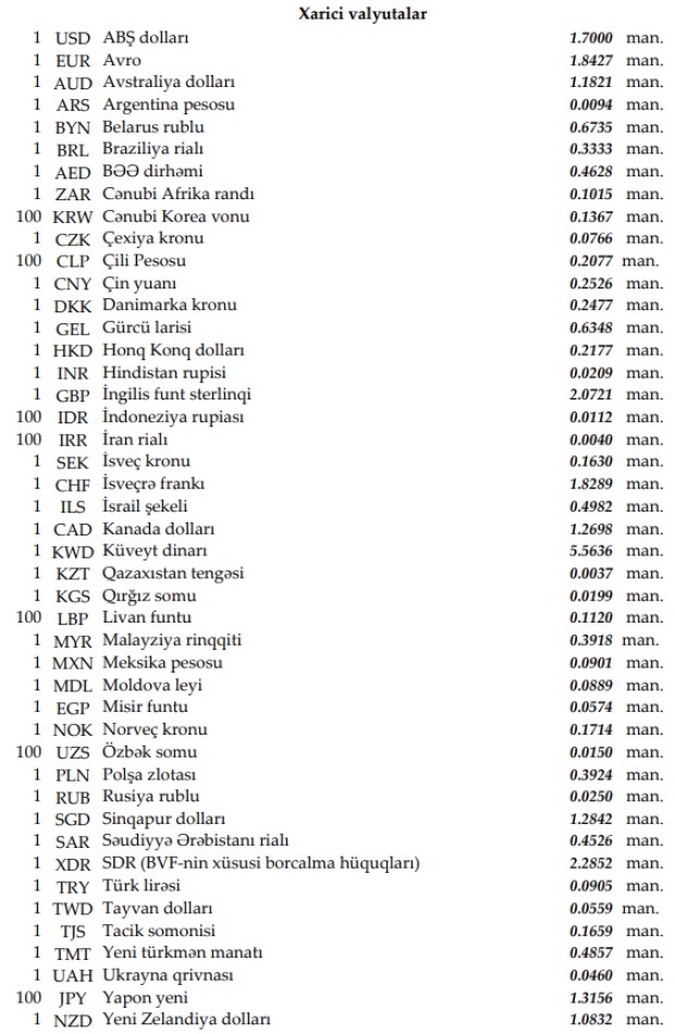 Dolların bazar ertəsi üçün rəsmi məzənnəsi müəyyən olunub
