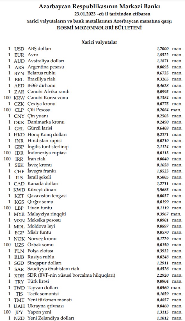 Dolların bazar ertəsi üçün rəsmi məzənnəsi müəyyən olunub
