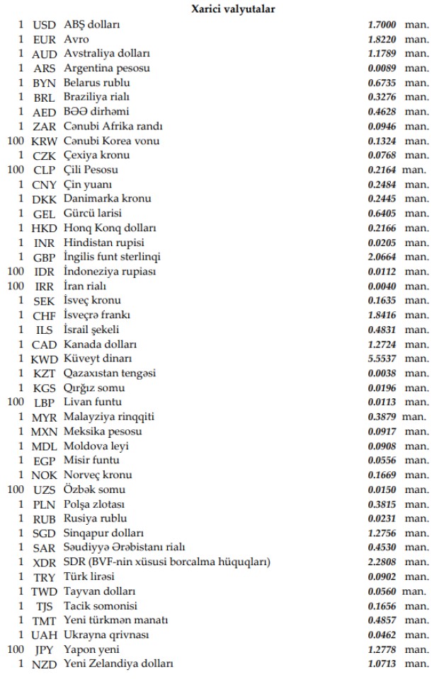 Rəsmi məzənnələr açıqlandı