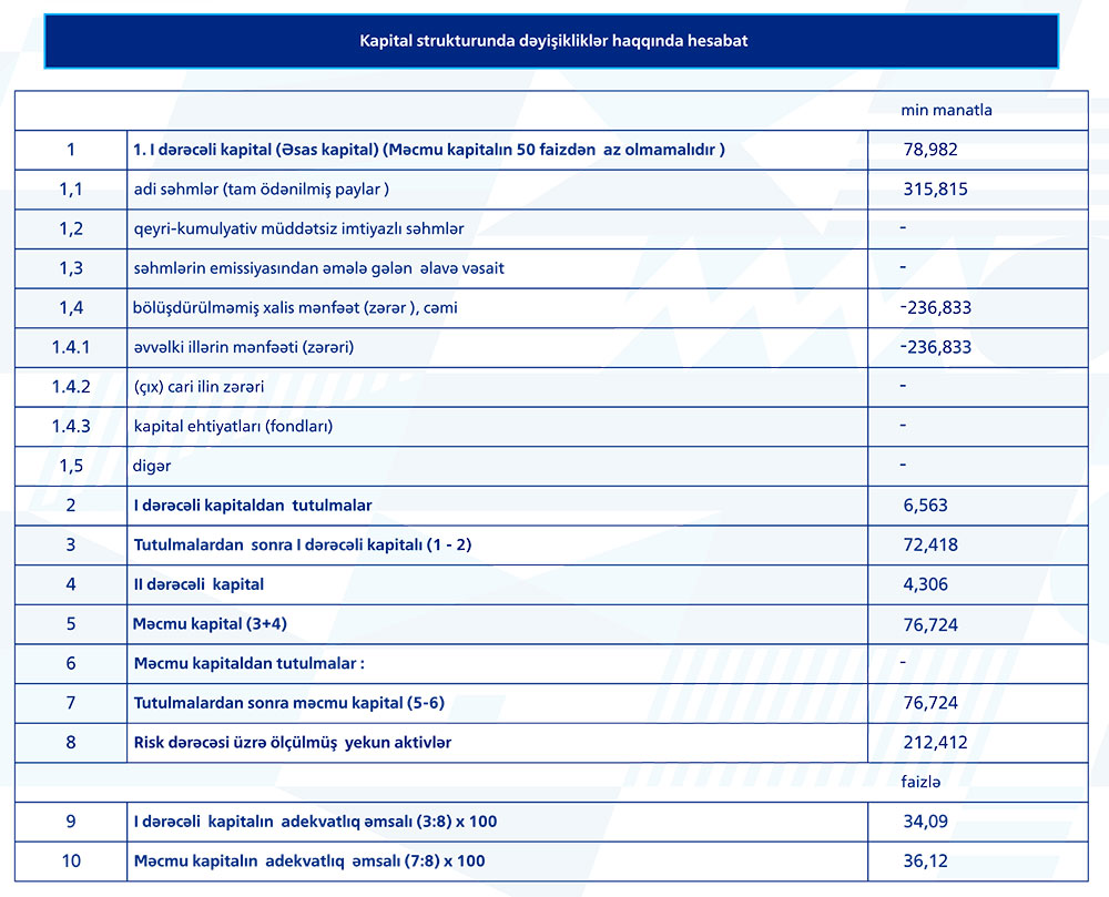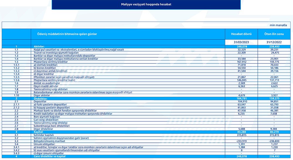 İlk rübdə Bankın depozit portfeli 10 milyon manatdan çox artaraq 104 milyon 910 min manata yüksəlib.